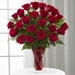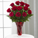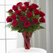 The FTD® Anniversary Rose Bouquet blooms with a sweeping romantic style to celebrate your personal fairy tale! Gorgeous red roses are the pinnacle of passion and love translated through their swirling blooms and rich coloring. Accented with lush greens and presented in a stylish red glass vase with a modern twist design, the stunning rose bouquet speaks to a love that was meant to thrive throughout the ages.