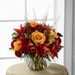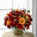 B2-4922The FTD® Autumn Beauty™ Bouquet exudes the warmth and magnificence of the harvest season with each sun-kissed bloom. Orange roses are brilliant and bright against rust colored Asiatic lilies, burgundy carnations and mini carnations, red matsumoto asters, red hypericum berries, and a variety of lush greens. Accented with birch branches throughout, this incredible arrangement is seated in a clear glass bubble bowl vase to create an exceptional look your special recipient will love.