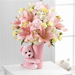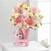 BGHThe FTD® Baby Girl Hug® Bouquet is a sweet and adorable way to congratulate the new family! Pastel pink roses combine with pale yellow mini carnations, white Peruvian lilies, pink Asiatic lilies and a variety of lush greens, all perfectly presented in a blushing pink ceramic vase hugged by a darling matching pink plush bear to create a wonderful welcome to the baby girl.