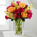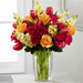 FTD® proudly presents the Vera Wang Beauty and Grace™ Bouquet. A stunning display of sun-crushed sophistication, this bouquet of fuchsia tulips, pale yellow stock, peach roses and hot pink spray roses demands their attention. Presented in a modern clear glass vase, this incredible arrangement is sure to convey your warmest wishes with each sunlit bloom.