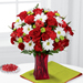 CDRThe FTD® Cherry Sweet™ Bouquet comes straight from our fun, trendy, and simply irresistible Color Confection Collection. Racing with red, this stunning flower bouquet begins with red roses, Peruvian Lilies, and carnations offset by burgundy mini carnations, white traditional daisies, green button poms, and lush greens to create an arrangement that finishes with cherry popping beauty . Presented in a red glass vase to give it a perfectly candy coated look, this mixed flower arrangement is set to send your sweetest wishes to friends and family in honor of a birthday, as a thank you, or just to celebrate in style.