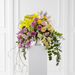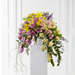 The FTD® Display of Affection™ Arrangement is an exquisite way to commemorate the life of the deceased. Lavender roses, yellow stock, pink stock, pink tulips, yellow roses, pink roses, pink spray roses, lavender larkspur, Bells of Ireland, yellow freesia, yellow Asiatic Lily, blue delphinium, green hydrangea and lush greens are accented with curly willow branches and arranged to create a sophisticated display that radiates elegance and grace at their final farewell service.