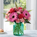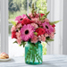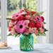 FTD® proudly presents the Better Homes and Gardens® Gifts from the Garden™ Bouquet. Blooming with beauty and a natural grace your special recipient will find perfectly alluring, this mixed flower bouquet extends sweet sentiments and warm wishes. Hot pink roses and gerbera daisies take center stage in this flower arrangement surrounded by pink mini carnations, pink snapdragons, Boston Fern fronds, and lush greens. Presented in an aqua blue glass vase with a vintage look they will adore, this stunning flower bouquet is set to make a wonderful impression in honor of a birthday, as a thank you or congratulations gift, or to just brighten and lighten their day.