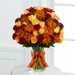 The FTD® Golden Autumn™ Bouquet exudes the warmth and comfort of the harvest season with each colorful bloom. Peach spray roses, burgundy mini carnations, butterscotch chrysanthemums and lush greens are arranged beautifully in a classic clear glass vase accented with an orange plaid ribbon around the neck, creating a truly wonderful bouquet that will send your sweetest sentiments to your special recipient for a fantastic fall.