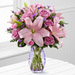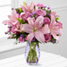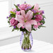 The FTD® Graceful Wonder™ Bouquet by Better Homes and Gardens® blushes with floral beauty to send your special recipient your most heartfelt sentiments. Lavender roses and pink Asiatic lilies are surrounded by pink mini carnations and purple Monte Casino asters to create an incredible flower arrangement. Presented in a designer lavender cut glass vase, this mixed flower bouquet will make the perfect impression on their birthday, anniversary, in celebration of the birth of a new baby girl, or as a way to express your thanks and gratitude.