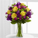 D3-4897The FTD® Happy Times™ Bouquet employs roses and stock to bring vibrant color and fragrance straight to their door on their special day. Yellow roses, purple stock, green button poms, fuchsia mini carnations and lush greens create a stunning display beautifully arranged in a clear gathered square glass vase to help you convey your happy birthday wishes or send your congratulations.