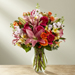 The FTD® Into the Woods™ Bouquet displays a rustic, cozy appeal with it's unique blend of blooms, making this a flower bouquet your special recipient won't soon forget! Hot pink roses, orange spray roses, pink gilly flower, and pink Asiatic Lilies have a wonderfully warm and inviting look when arranged amongst yellow Peruvian Lilies and lush greens. Presented in a clear glass vase, this gorgeous fresh flower arrangement is set to create an impressive thinking of you, thank you, or happy birthday gift. GOOD bouquet is approx. 17"H x 13"W. BETTER bouquet is approx. 18"H x 14"W. BEST bouquet is approx. 19"H x 16"W.