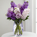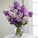 The FTD® Sweet Devotion™ Bouquet by Better Homes and Gardens® brings together roses and stock stems to design a wonderful wish for perfect happiness for your special recipient. Lavender roses and stock are accented with pink stock and lush greens to create an amazing flower bouquet. Lovingly arranged in a designer lavender etched glass vase, this flower arrangement offers them a beautiful expression of your sweetest sentiments to celebrate Mother's Day, extend your happy birthday wishes or to help celebrate the arrival of spring.