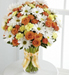 The FTD® Sweet Splendor™ Bouquet radiates cheer and well-wishes with every sun-filled bloom! Orange spray roses, yellow mini carnations, white traditional daisies and lush greens are brought together in a classic clear glass vase accented with a designer apricot plaid ribbon to create a bouquet set to brighten any day. Approx. 14H x 10W