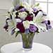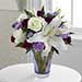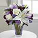 The FTD® Thinking of You™ Bouquet blooms with roses, lilies and carnations to send your special recipient a flower bouquet exuding a soft sophistication. Gorgeous white roses and white Oriental Lilies are perfectly offset by lavender carnations, purple mini carnations and lavender statice to create an incredible flower arrangement. Presented in a designer lavender glass vase featuring hand cut accents, this mixed flower bouquet is a wonderful gift to send in honor of a birthday, anniversary, to offer your congratulations or to extend your thanks and gratitude. Approx. 13H x 12W