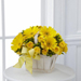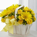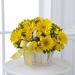 The FTD® Uplifting Moments™ Basket is a guaranteed way to lift any mood and spread cheer with each sunlit petal! Bright yellow gerbera daisies and spray roses burst with vibrant energy arranged amongst green hypericum berries and myrtle greens in a simply stylish whitewash basket. Bedecked with a lemon yellow wired ribbon this bouquet proclaims an abundance of light and hope.