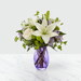 FTD® proudly presents the Sense of Wonder™ Bouquet. Boasting a truly charming collection of blooms that is set to surprise and delight your special recipient, this fresh flower arrangement has a light and airy look to it that is set to capture their hearts and imagination. Cream roses, mingle with lavender Peruvian Lilies, showy and fragrant white Asiatic Lilies, green button poms, lavender statice, bupleurum, and lush greens to create an inviting springtime look. Presented in a stylish lavender glass vase to give this flower bouquet an extra pop of color, this arrangement looks like it's been taken straight from the pages of Better Homes and Gardens® to create that perfect Mother's Day, thank you, or happy birthday gift. GOOD bouquet is approximately 14"H x 12"W. BETTER bouquet is approximately 14"H x 14"W. BEST bouquet is approximately 16"H x 15"W.