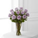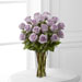 An enchanting bouquet of lavender roses sweetly touches her heart. Paired with seeded eucalyptus in a stylish glass vase, these lovely roses are a perfect gift.