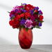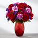 17-V2The perfect expression of love and sweet affection, this Valentine's Day bouquet is ready to send your heart's every wish straight to your recipient's door with blooming beauty. Rich red roses are surrounded by a collection of ruffled blooms including hot pink carnations, red mini carnations, purple statice and fuchsia mini carnations, perfectly accented with lush greens. Presented in a stunning red modern glass keepsake vase, this gorgeous bouquet is ready, set, and styled to celebrate love this coming February 14th.
